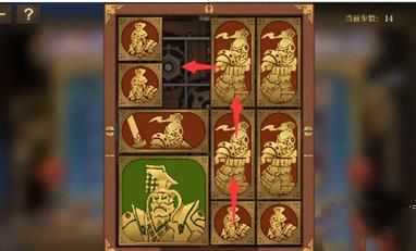 1、将军开局下移,同时上方的向下移,右上向左移,右下全部向上移;