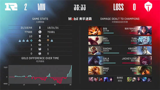第一局,9分半团战RNG拿下一血,小规模碰撞你来我往,经济始终持平;28分钟TES拿下土龙魂,RNG转战拿大龙;随后经济差距被拉开,RNG双龙汇推平基地,拿下第一局的胜利。本局MVP给到GALA厄斐琉斯。