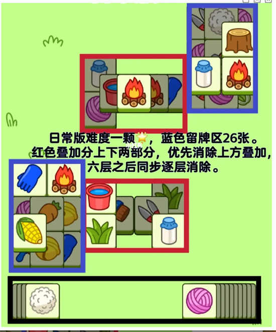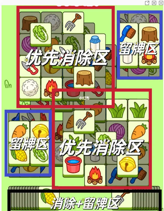 1.牌层自上而下消除,每次消除尽量拿表层牌,逐层消除,不要跳着挖,容易前期就卡住