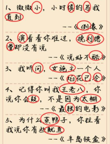 疯狂梗传杰伦歌词本3怎么过?杰伦歌词本3这关需要小伙伴们找出文章中的错别字,最后找出所有的错别字即可通关,一共有五个句子,第一句是“微微小,小时侯的马我直到——《倒像》”,第二句是“演看着你难过,挽刘德滑却没有说——《说好不酷》”,第三句是“我听问,女施主一个人——《焰花已泠》”,第四句是“记得你叫我王老八,你说你会鼓,不是因为太糊——《最胀的电影》”,这样一看是不是已经看出非常多的错别字了,快将他们记下来,并找出来吧,下面就给大家分享一下疯狂梗传杰伦歌词本3找出错别字答案攻略,希望对你有所帮助,更多疯狂梗传关卡攻略可以到下方相关文章查询,比心。