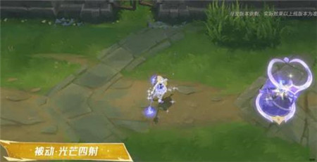 拉克丝在使用伤害类技能时,会将一股能量注入敌人体内,出现蓝紫色玫瑰的标记;下一次发动普攻或伤害类技能时,将点燃标记,对敌人造成额外魔法伤害。