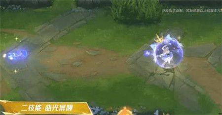 拉克丝朝目标方向掷出双头玫瑰魔法棒,为自己和魔杖触及的队友提供蓝紫色的透明皇冠护盾。当魔杖到达飞行终点时,就会自动返程,并再次向触及的队友提供一层护盾。