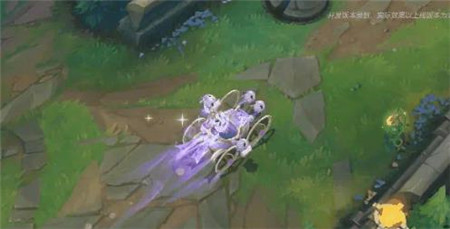 当蓝紫色玫瑰命中目标时,就会对敌人造成伤害并出现圆柱形的蓝紫色水晶圈进行束缚。