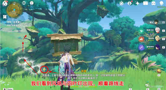 1.观察后发现出现风场和四叶印,我们顺着下图所示路线走
