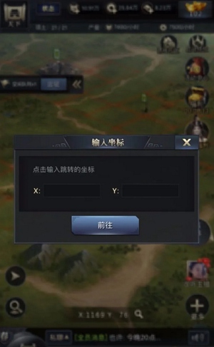 3.搜索确认坐标: 在一个州之后,我们就要选地方了,选择一个附近资源点比较多的,敌对少的地方,选一块空地进行建造。