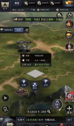 4.点击空地进行建造: 为什么要在空地上建造东西呢?三国群英传的迁城机制比较的奇特,我们需要先建造分城,才可以主城迁移过来。