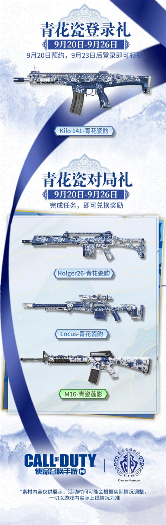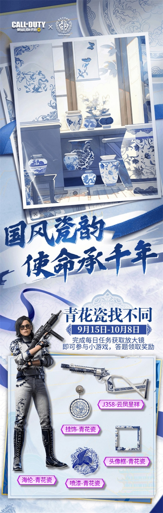 这次,《使命召唤手游》X《高安元青花博物馆》即将展开文创合作,将精美的青花瓷带到游戏当中,与战士们一起感受“纯净高雅”的青瓷极品!
