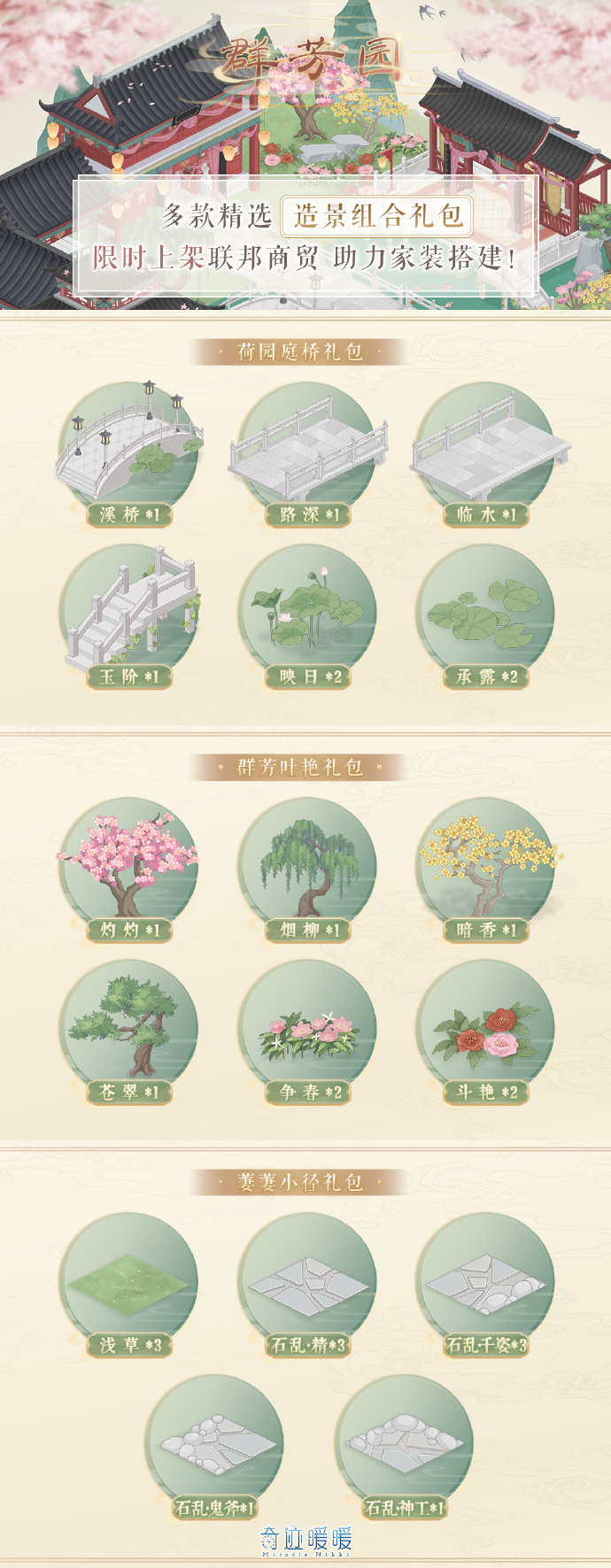 9月12日—9月21日,联邦商贸将同步上架多款超值家具礼包,内含群芳园限定家具的【精选造景组合】,助力园林家装搭建!