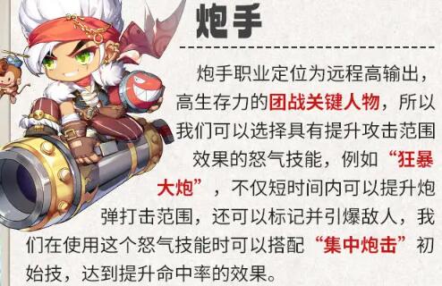 2、炮手血量高,生存能力强,怒气技能可提升自己的攻击范围。