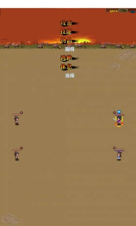 游戏画面以像素风为主,人物模型比较可爱但非常小,必须要非常仔细才能看清。背景制作色彩比较丰富,但内容较少,游戏界面比例极不协调,战斗场景更是简陋,双方在一大片土黄色的面板上战斗,大约占了全屏幕的五分之四。而几个米粒大小的人在屏幕中战斗,看上去……这简直看不下去了。
