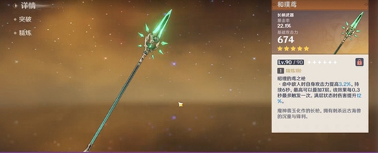 3、和璞鸢:674白值,22.1%暴击率,有攻击,有增伤,可以说几乎完美。但为什么把它排在匣里灭辰之后?因为它在实战中有一定的启动时间,在胡桃E技能9秒的输出时间里,叠满需要命中7次(普攻,重击,下落攻击皆可)才能有22.4%的攻击力与12%的增伤加成,而在实战中,这可能已经过去了三个A重击了。而这个效果仅能维持6秒,也就是说,每次叠满后,下次开E需要重新叠。