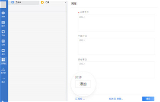 我们电脑的用户直接点击工作台,汇报,然后日报下面即可看到附件的添加的功能了。