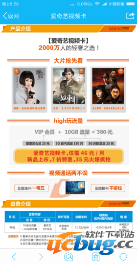 爱奇艺视频卡官方说明:月租46元,包含5G省内流量+5G省内闲时流量+爱奇艺会员,全国接听免费。赠送来电显示,炫铃,联通秘书。这次你心动了吗?心动不如行动,辽宁用户沃们等你来。