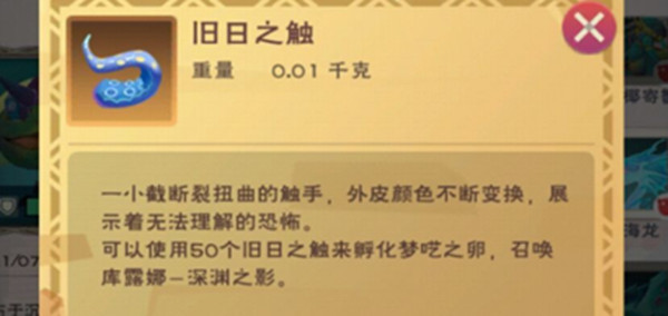 2:此boss好像是击杀必掉旧日触手,概率掉卵和另一只触手,旧日触手可以孵化出深渊库露娜,只能当做宠物;