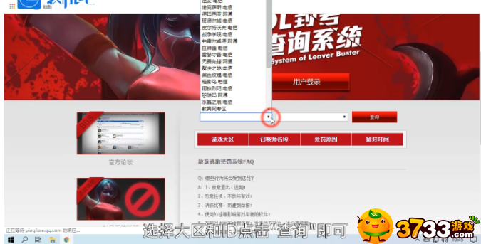 3、选择大区和ID点击“查询”即可查询到账号的封号记录。