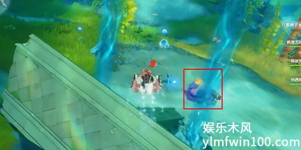 2、在水中潜行,寻找一个呈紫色的寄居蟹魔物。