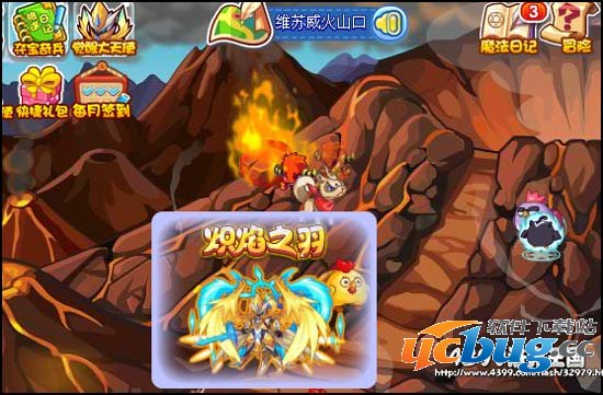 1、前往维苏威火山口,点击场景中的炽焰之羽,打开活动对话框