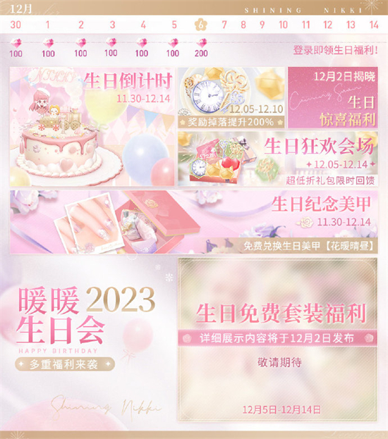 每日登录即领生日粉钻福利,为暖暖筹备生日惊喜吧!