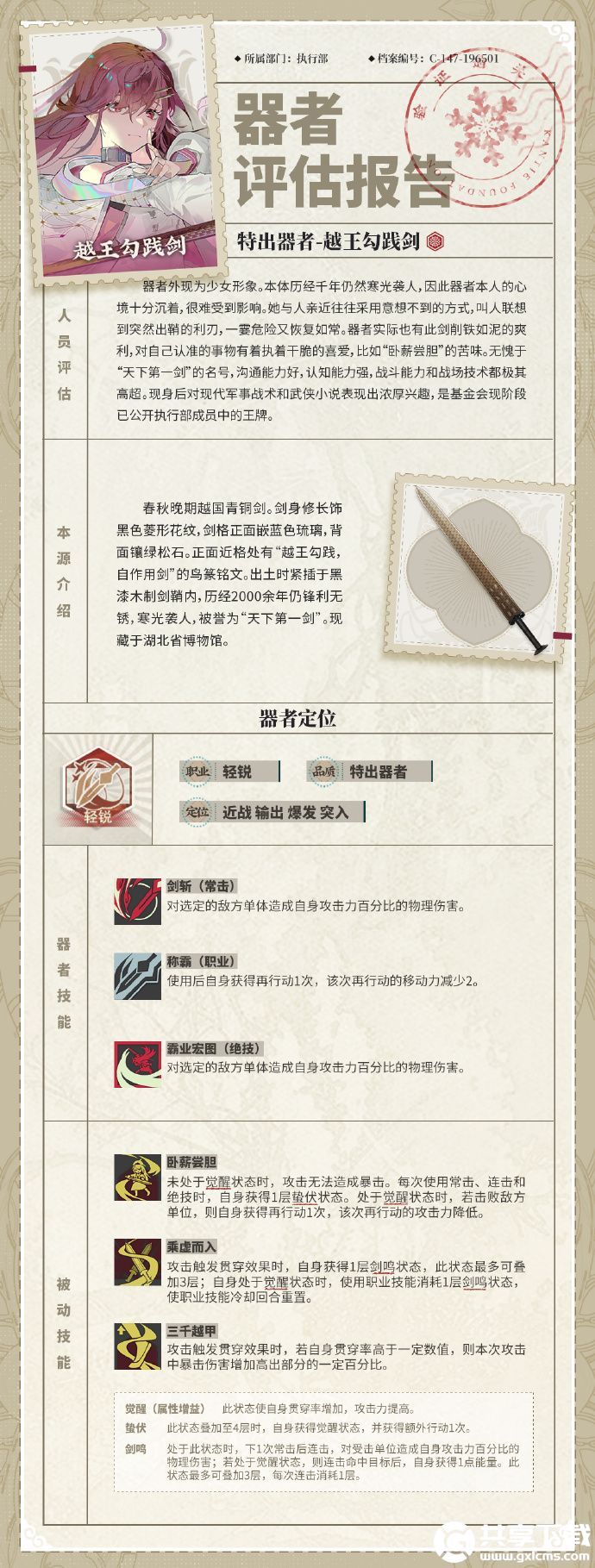 物华弥新特出器者越王勾践剑怎么样?物华弥新这个好玩的收集养成类型的游戏,各种的游戏策略玩法和不同收集养成方式都是非常刺激好玩的,游戏中更多的战斗力提升阵容也都是非常刺激的,完成主线任务搭配阵容来进行获取福利装扮的,不同的活动和各种的战斗来进行策略冒险起来的,还有角色制约也都是可以随时来进行选择搭配起来的, 不一样的游戏战斗角色操控方式都是非常刺激好玩的,也有很多的玩家都非常好奇物华弥新特出器者越王勾践剑怎么样呢?那也可以直接往下看看相关攻略介绍吧,相信也可以帮助到大家的。