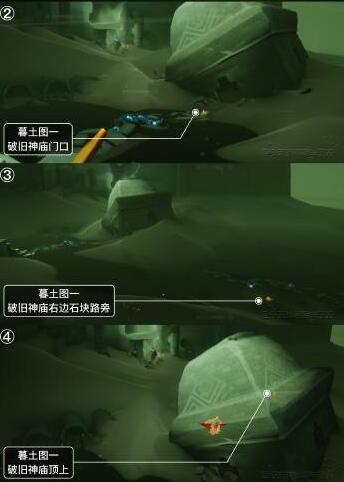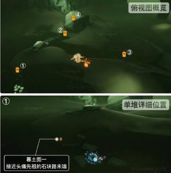 想要收集今天刷新的季节蜡烛就按照上图的点位去一一收集吧,反正全部都在墓土图一收集的速度也会随之快起来。