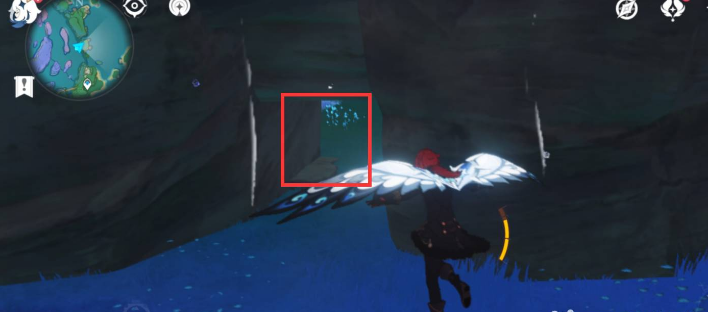 到达位置后,使用风之翼慢慢往下飞,然后就可以看到如图所示的一个洞穴。