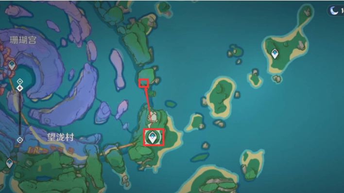传送到海祇岛珊瑚宫地图中传送点处,然后到达箭头所指的位置,注意不要跳下悬崖。