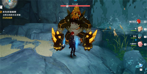 3、水生态调查任务,我们首先需要来到地下沼泽拉进行钓鱼我们会获得一个任务道具,我们把任务道具提交给海迪夫后我们返回地下沼泽用水元素把道具激活,激活后我们击杀岩龙蜥,然后返回营地交付即可;