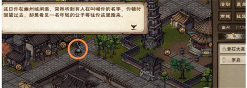 1、午时,在幽州(17.23)触发剧情,进入幽州客栈歇脚,李青锋和罗启二人现身,