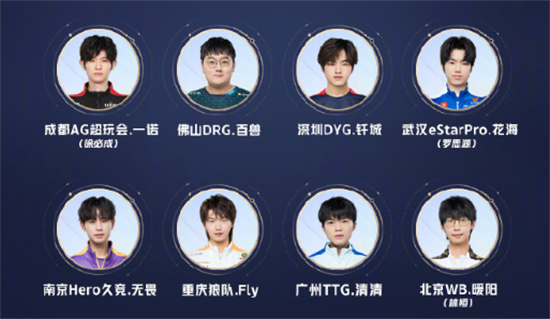 南京Hero久竞.无畏 重庆狼队.Fly 广州TTG.清清 北京WB.暖阳