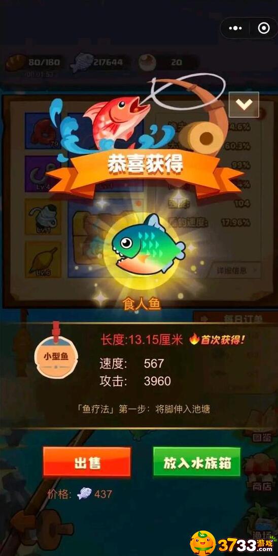 2、钓上400大型鱼类。
