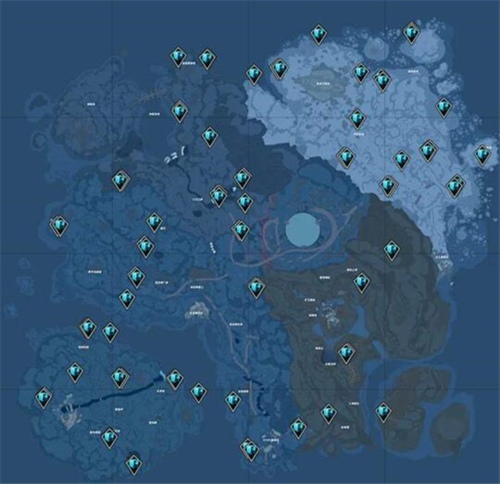 3、以下就是冰元素矿石的分布图了,大家可以对照着图内的标识寻找;