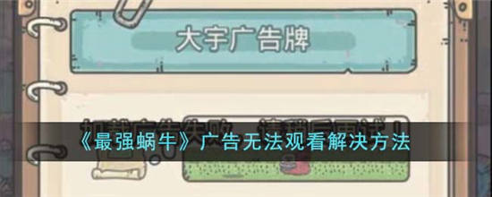 最强蜗牛广告无法观看怎么办?大家在游玩最强蜗牛游戏的过程中,都会不定时弹出一些小广告,玩家们可以自主选择是否观看这些广告内容,如果选择观看的话,那么观看结束后就能得到相应的奖励物品,这些道具也是能帮助大家更为惬意地游玩着这款游戏,部分玩家时下也是有遇到一番广告内容加载失败的情况,继而导致无法顺利观看广告,自然也就无法顺利领取到相应的广告奖励内容,因此也是很为烦恼的存在,不过也不用担心半点,因为小编目前已经整合好了具体的解决办法来站中这里,相信你们阅览后就肯定不会再困惑半点!