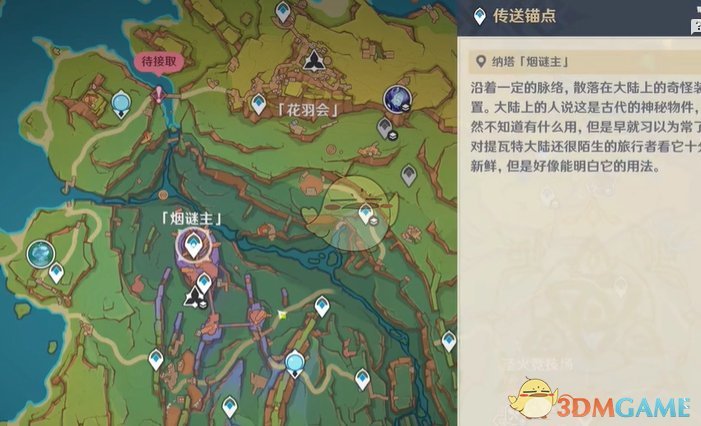 1、首先我们打开地图,传送到烟谜主这个锚点位置;