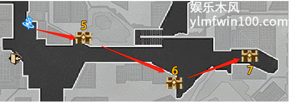 5号宝箱里面的小三角角的诊所前面,6号宝箱在地图底部的房子旁边,最后一个宝箱在地图右下角的路的尽头。