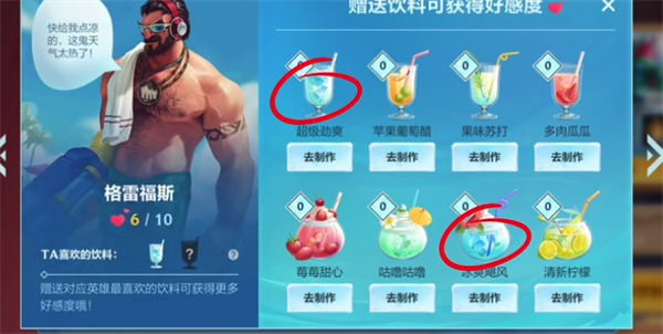 男枪觉得天气太热,需要凉快的,所以这里给他超级劲爽以及冰爽飓风这两个饮料。