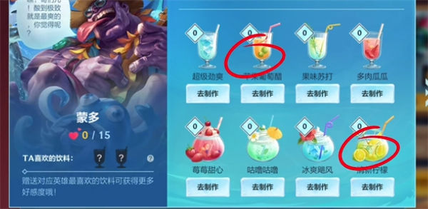 蒙多喜欢酸到极致的饮料,所以需要赠送苹果葡萄醋以及清新柠 檬即可。
