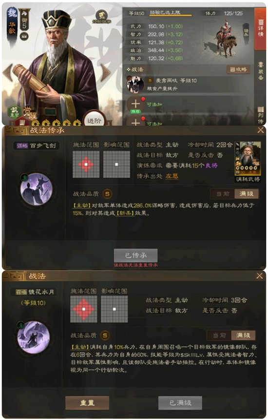 一、属性分析华歆的兵种适性除了枪兵是B,其他都是C,较为一般,但作为三星内政官政治和智力都达到了80 还是非常亮眼的,特别是他自带的战法简政用来传承给属性更好的内政官是非常有用的。