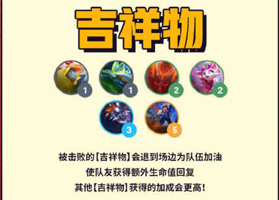 被击败的[吉祥物]会退到场边为队伍加油使队友获得额外生命值回复其他[吉祥物]获得的加成会更高!