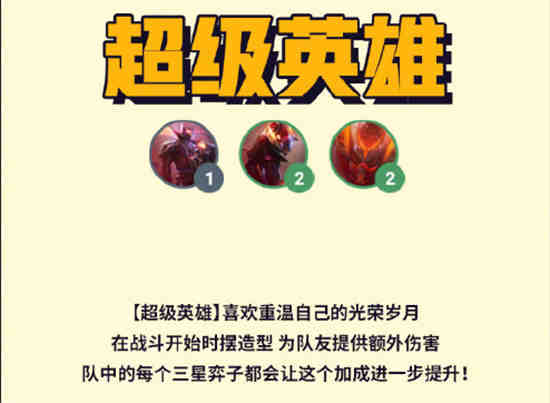 [超级英雄]喜欢重温自己的光荣岁月在战斗开始时摆造型为队友提供额外伤害队中的每个三星弈子都会让这个加成进一步提升!