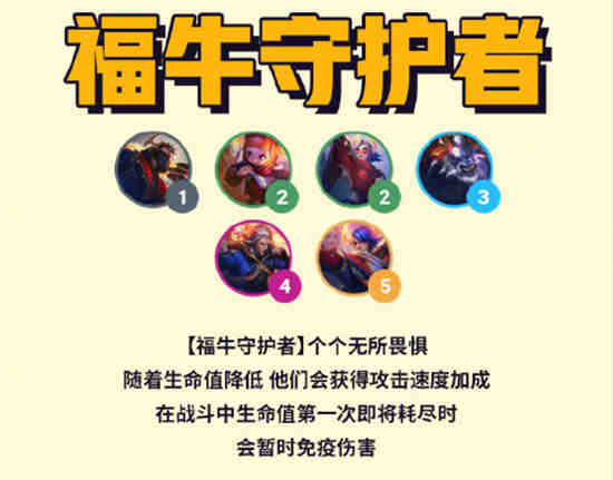 [福牛守护者]个个无所畏惧随着生命值降低他们会获得攻击速度加成在战斗中生命值第一次即将耗尽时会暂时免疫伤害