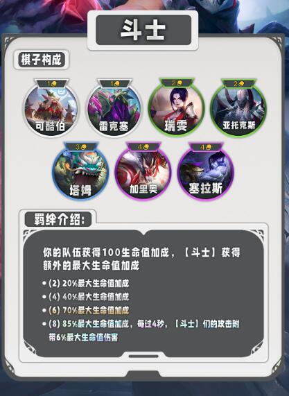 (8) 85%最大生命值加成,每过4秒,斗士们的攻击附带6%最大生命值伤害。