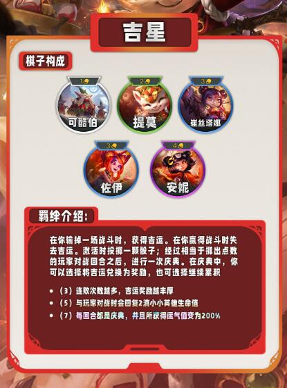 棋子组成:可酷伯、提莫、崔丝塔娜、佐伊、安妮