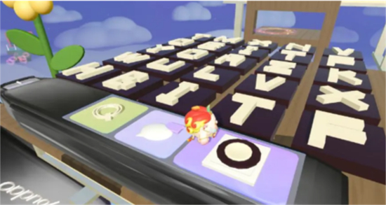 3、最后的关卡中蛋仔们只要按照指定物品的正确英文拼写来移动就可以快速的抵达目的地了,小心不可以移动到错误的单词字母上面。