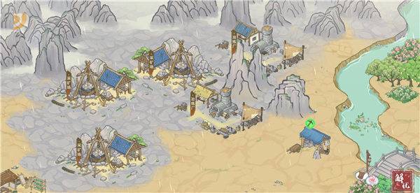 1、采矿场需要建造在岩地,即过了桥解锁的石头地。大家需要先花费25万解锁上方沓渺山地图,然后把采矿场建在岩地,点两块地图中间那个桥解锁要25万