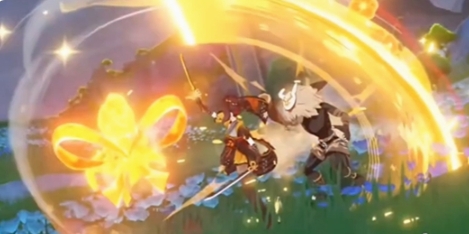 在释放战技后,千织可以获得一秒霸体,在此期间的行动会影响战技接下来的效果,也就是千织的突破天赋,如果再次点击战技,会触发【织锦】效果,可以切换到下一个角色,并且给下一个角色提供两次等于千织上挑伤害的协同攻击,每两秒触发一次,该效果持续八秒。