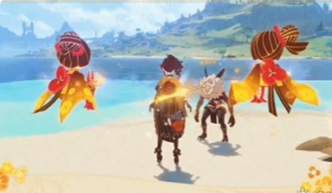 不过这个攻击虽然说是范围攻击,但是范围真的很小,说是对单的也不为过,下图千织左边飘的那个小东西就是“袖”。