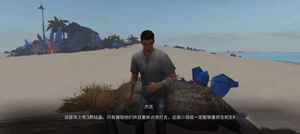 1、跟随任务追踪指引,前往海岸边寻找NPC杰克,他让我们去破坏岛上的三颗结晶。