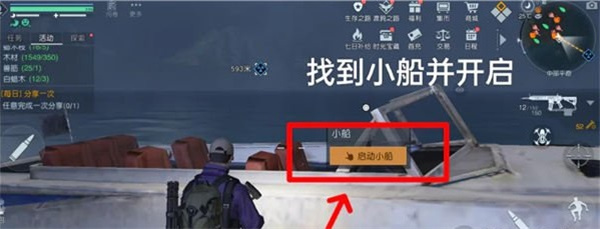 7.找到小船并开启到达对岸(上岸击败3个丧尸会发现上面有个NPC进行通话)。