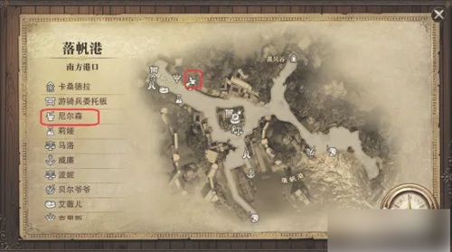4.如果没有的话我们打开地图,在地图上找到铸铁大师尼尔森,在地图上显示的是一个打铁的标志。