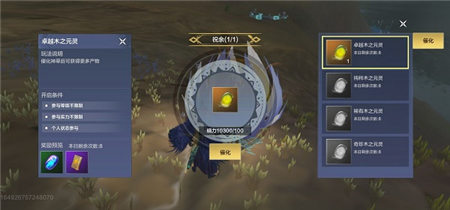 使用木之元灵催化可获得原气晶石,用于升级神兵。每日10次,等级越高的元灵奖励越多。